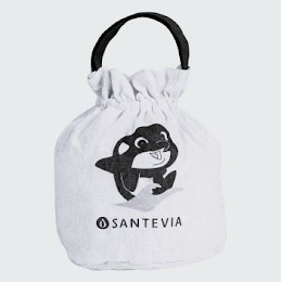 | Mark Description: | The mark consists of a three-dimensional image of a pouch cinched at the top with a handle extending from each side of the top, a cartoon image of a baby whale emerging from water on the front, and a tear drop design in a circle next to the stylized word "SANTEVIA." The dotted lines for the shape of the bag, cinching and handle straps shown in broken or dotted lines is not part of the mark and serves only to show the position or placement of the mark. |